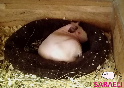 Větší z miminek je sameček s roztomilou skvrnkou na levém boku, který dostal jméno Bambi. Jeho barva je červená s bílou a porodní váha je 124g. ♥